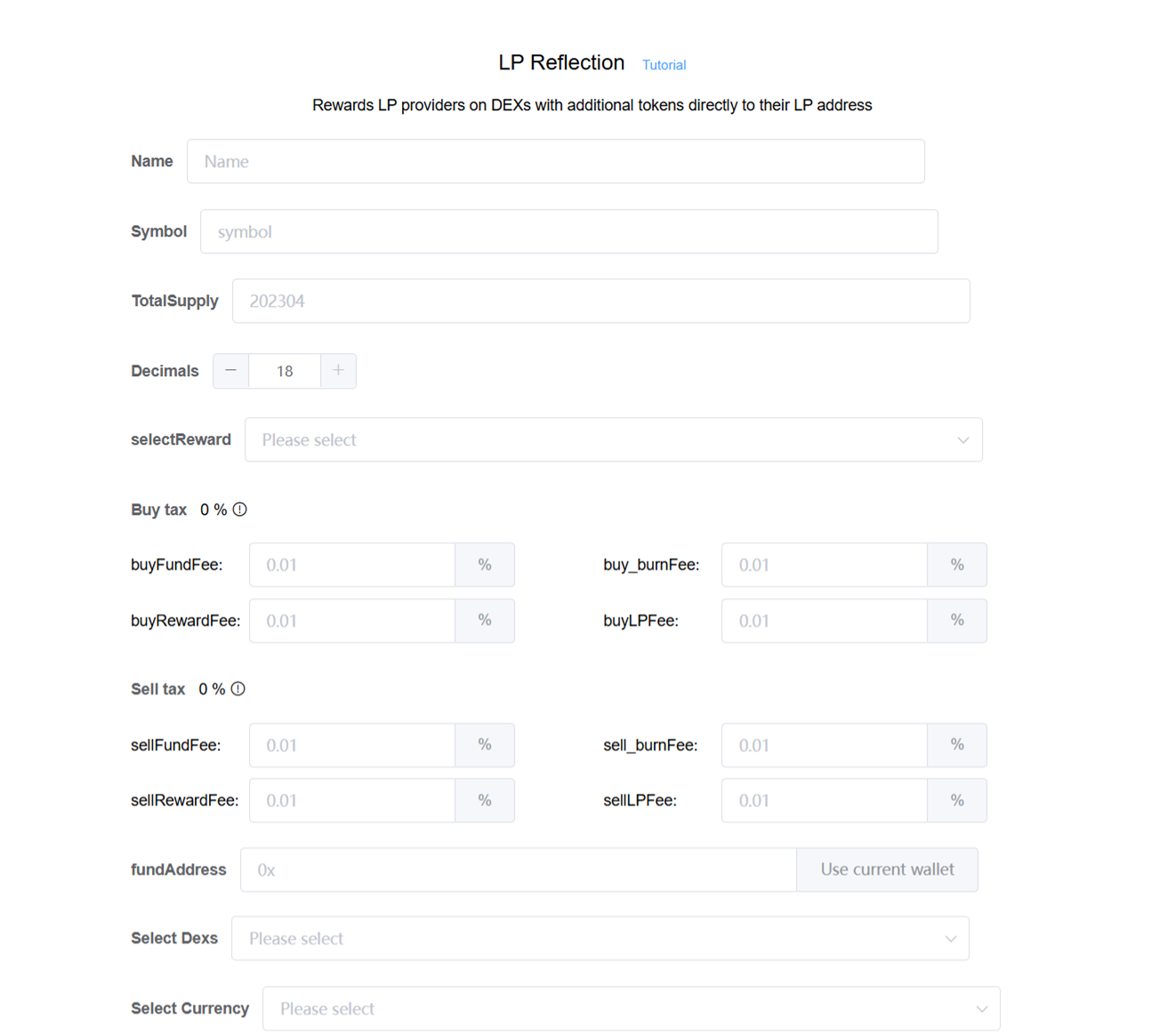 After successfully connecting to the wallet, we fill in the corresponding parameters on the token creation page:<https://www.pandatool.org/#/coinrelease/LPReflection?lang=en-US>