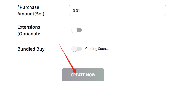 Note: After entering the purchase amount, make sure the connected wallet has enough SOL to cover the bundling fees.