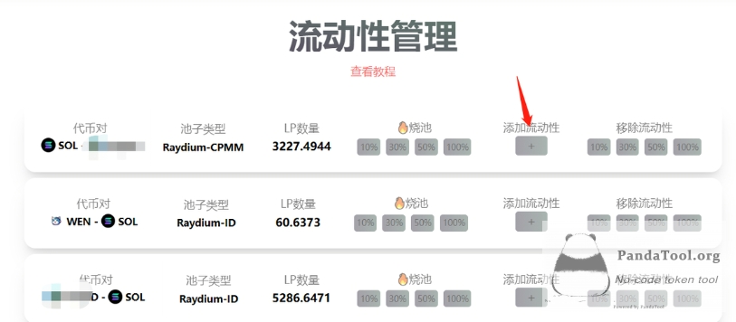 Solana流动性管理:https://solana.pandatool.org/managepool