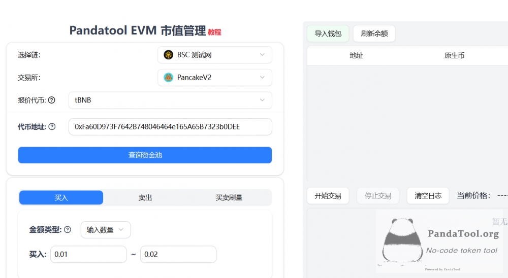 EVM市值管理(支持BSC、Base、ETH等)教程:https://help.pandatool.org/createtoken/swapbot