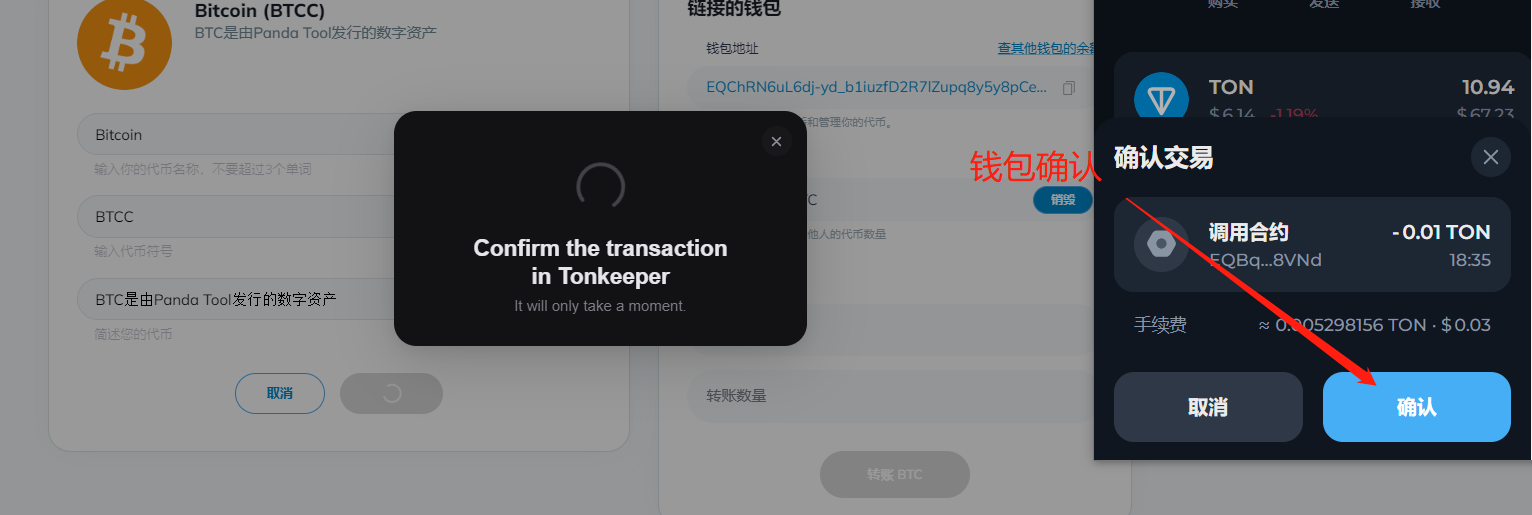 发币之前,务必使用安装Tonkeeper钱包插件,安装教程➔ https://help.pandatool.org/ton/tonkeeper