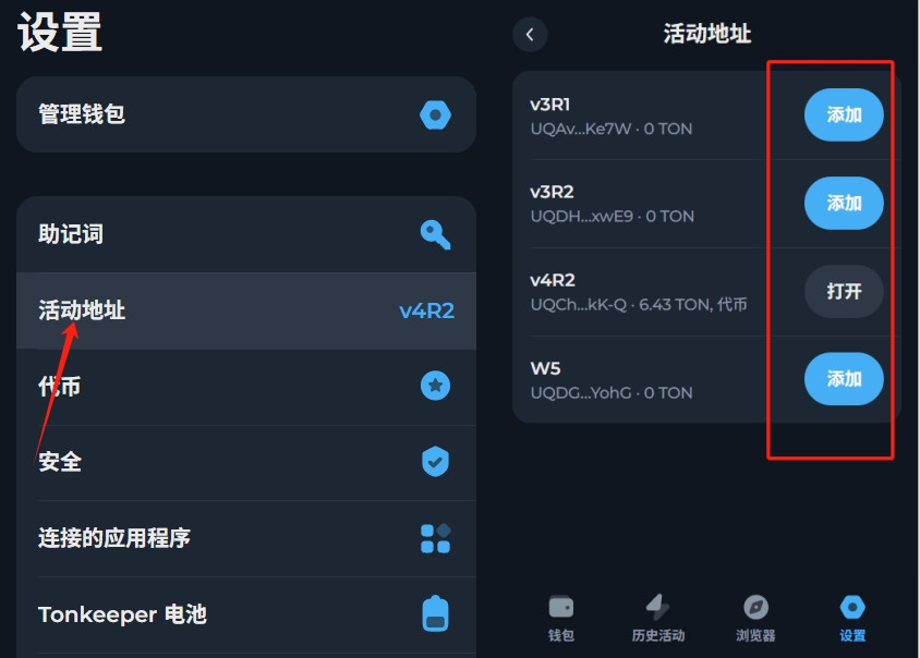 打开Tonkeeper,点击设置