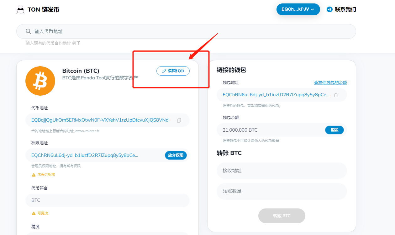等待几秒钟,就能看到你的代币控制台管理页面,然后点击编辑代币,就能修改参数了